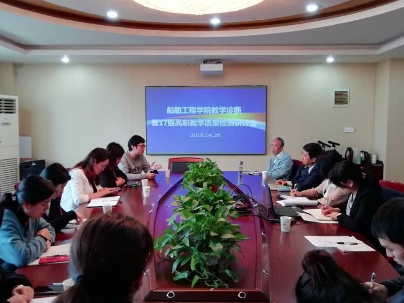 4月26日下午,船舶工程学院在学院会议室召开教学诊断暨17级高职教学质量检测研讨会。学院吴志亚书记、刘方副院长、基础部杨凤琴副主任、各教研室主任、各学测科目任课教师、17级班主任等领导和老师参加了会议。