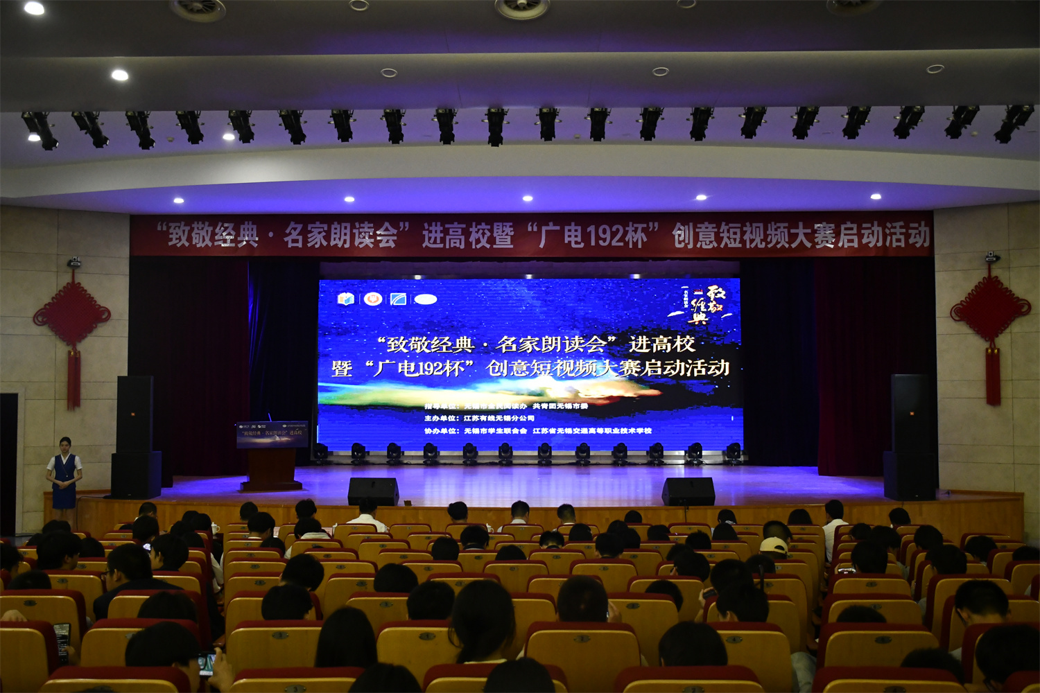 6月5日下午,一场别开生面的文化盛宴在学校大礼堂拉开帷幕。由江苏有线无锡分公司主办,无锡市学生联合会、开云官方站在线登入联合承办的“致敬经典·名家朗读会”进高校暨“广电192杯”创意短视频大赛启动活动在此成功举办。无锡市委宣传部出版印刷发行处副处长冯健,共青团无锡市委学少部副部长王裔,江苏有线无锡分公司党委委员、副总经理赵晓光,校党委委员、副校长耿兴华、王珏及在锡高校领导代表、江苏有线无锡分公司代表、我校师生代表600余人共同参加了本次活动。