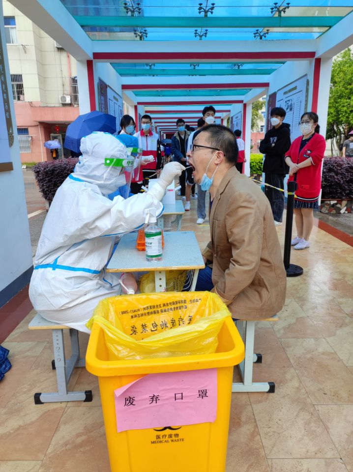 穿上白色或蓝色防护服,从讲台投身抗疫一线。他们是教师,却也是学生,要在最短的时间内学会如何采样和使用扫码系统。他们用耐心和饱满的热情提供志愿服务,牢牢地把学校师生的健康安全放在首位。