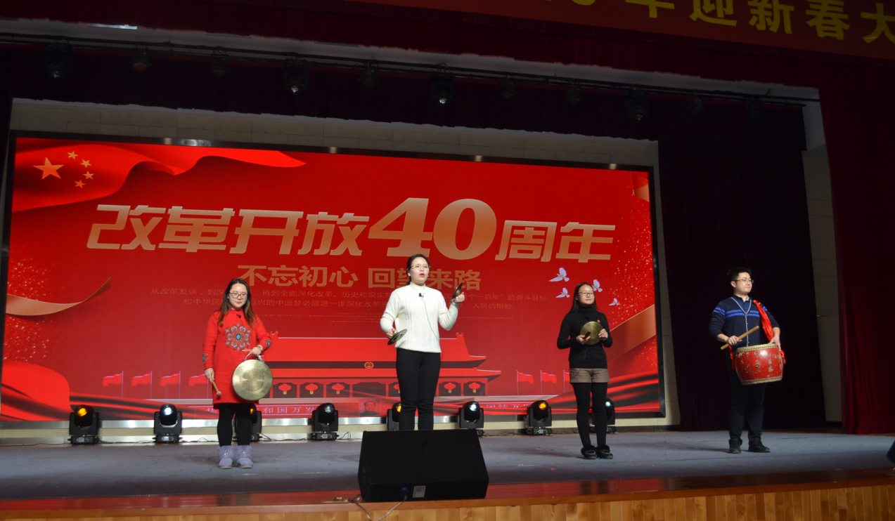 活动在充满活力,幽默搞笑的《萌猪拜年》中正式拉开了序幕。首先,陆春其校长向全体教职员工致新年贺词,陆校长回顾了学校2018年各项工作取得的成绩。他代表学校党政向全校师生员工、离退休老同志,向所有关心、支持学校事业发展的各级领导、各界朋友,致以诚挚的问候和最美好的祝福!在精彩纷呈的节目过程中,校党委副书记、纪委书记朱雨兰宣布《学校2018年十件大事》。邢勇副校长宣读 “四有”好老师表彰决定并颁奖。耿兴华副校长对在建校60周年师生汇报演出活动中表现优秀的10个团体进行表彰颁奖,倪依纯副校长对在建校六十周年活动中作出重要贡献的8个工作组进行表彰颁奖。节目过程中,全体教职工观看视频,重温建校六十周年汇报演出的台前幕后、回顾建校六十周年工作组人员攻坚克难的精彩瞬间、回味学校示范校创建工作的艰辛,最后校党委书记李虎向全体教职员工颁发特别奖,并致颁奖词,对全体教职工在2018年三大重点任务中的突出表现给予高度评价。最后,活动在校领导领唱的《我们走在大路上》拉下帷幕。