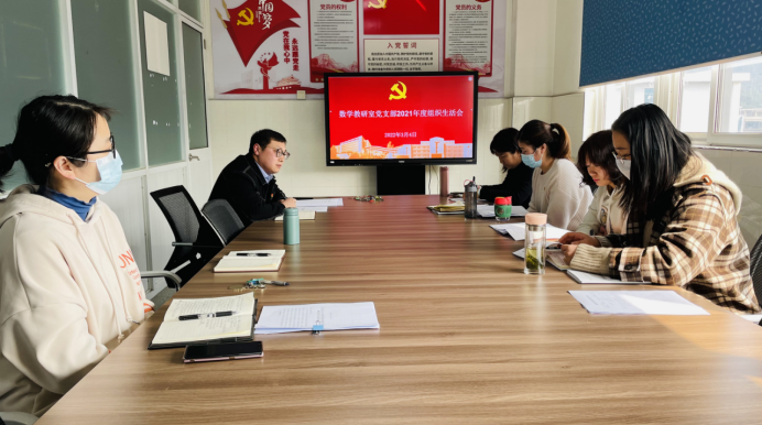 按照学校党委要求,2022年3月4日下午,数学教研室党支部在部门会议室召开了2021年度组织生活会及民主评议大会。数学教研室党支部全体党员参加了会议,会议由党支部书记吉勇主持。学校纪检监察室房继茹、基础教学部综合党支部书记袁雪平列席会议。