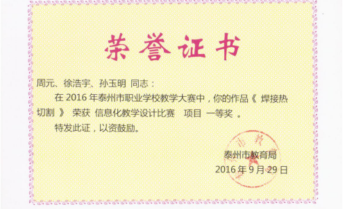 上一篇: 结业证书-中职生职业技能与职业精神实践研究——以江苏省靖江中等专业学校焊接技术应用专业为例