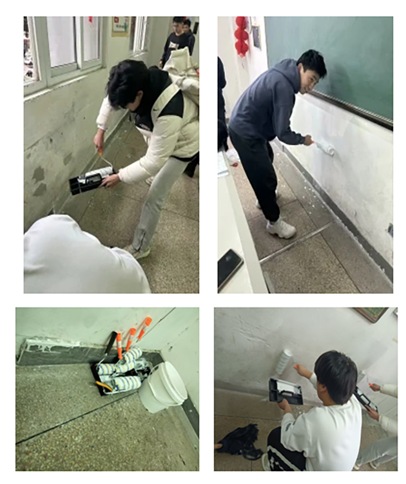 按照中国的传统习俗,人们过新年要穿新衣。在这冬季期末考试结束准备回家过年之际,222311班的同学们,在120日下午最后一场考试后,一起动手,给教室的墙壁刷白漆,使教室的面貌焕然一新。选择这个时间刷漆,一方面是担心上课期间刷的油漆会影响同学们的身体健康,另一方面是要给刷上墙的新油漆充足的晾晒时间,所以在一个月前便定好了考试结束后给教室刷墙漆,美化教室环境。