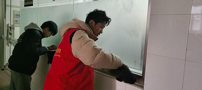 活动现场,志愿者们分工明确,密切配合。他们有的清扫实训室内的垃圾,有的擦拭玻璃窗的灰尘和杂物,还有的则忙着整理实验用具。尽管阳光照射下的气温已经开始升高,但志愿者们的热情却丝毫未减。他们的身影在春风中穿梭,成为了校园里一道美丽的风景线。