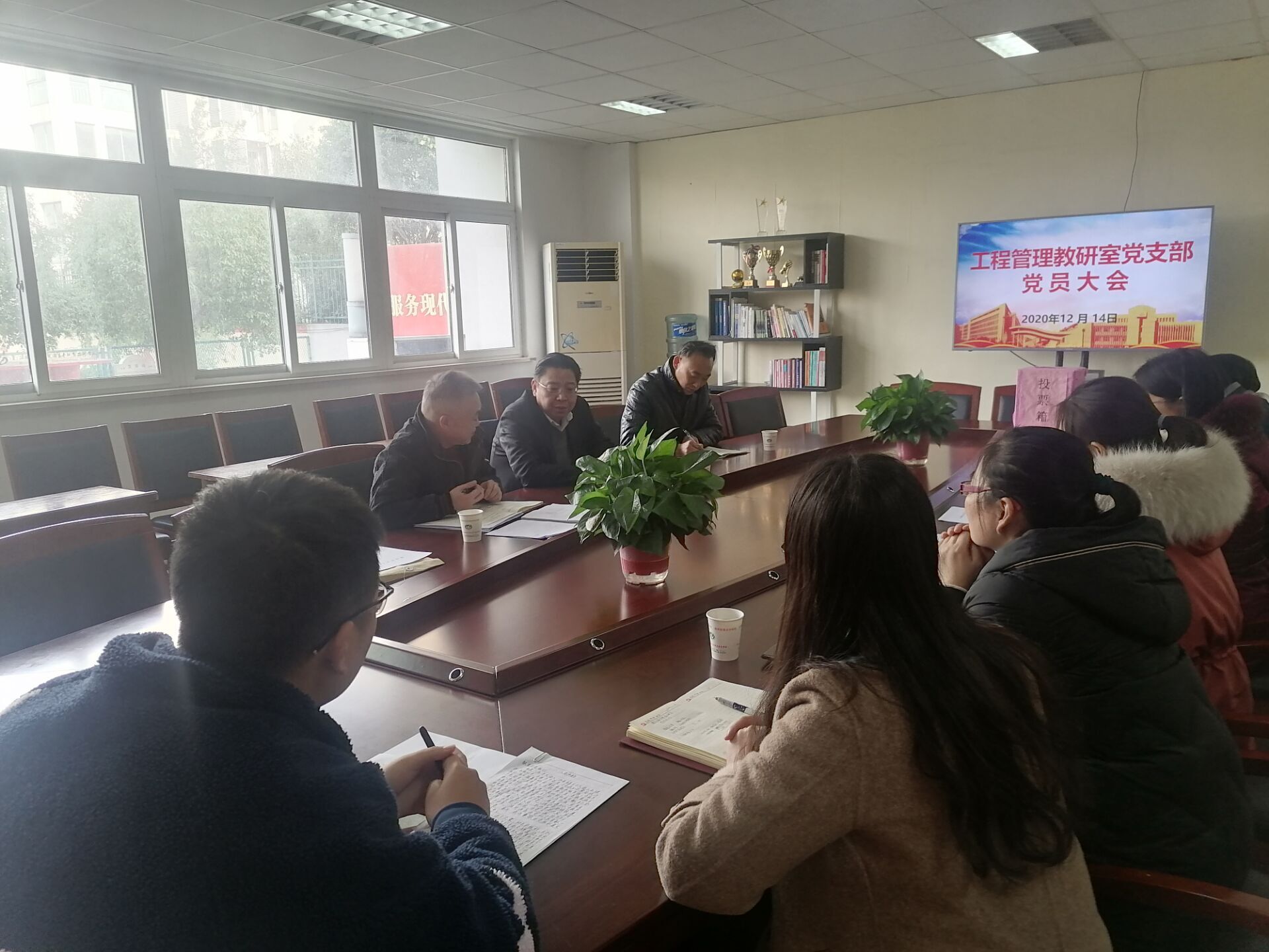 根据学校党委工作部署,我院工程管理教研室党支部于2020年12月14日,在交通工程学院会议室召开全体党员大会,会议由党支部书记李俊主持,党委书记、校长李虎同志以普通党员身份参加了会议。