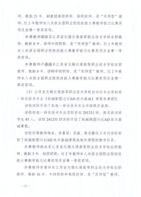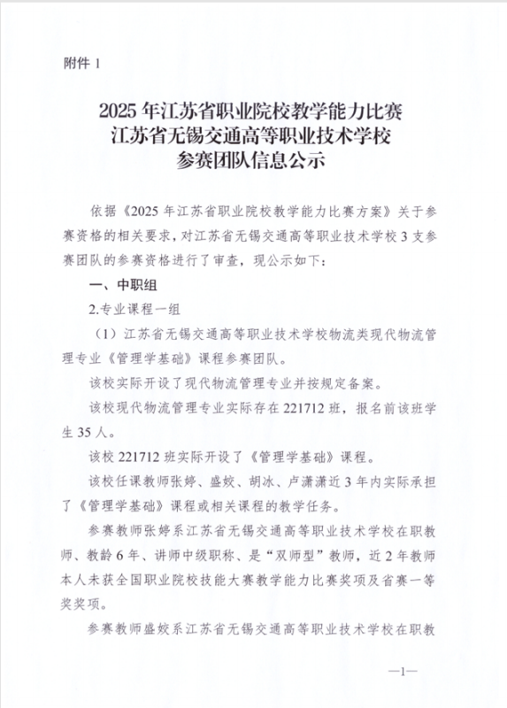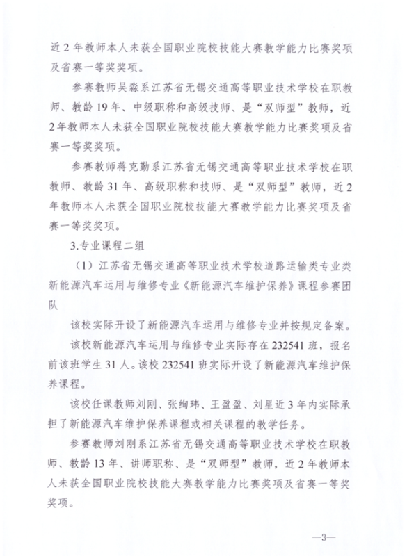 开云官方站在线登入物流类现代物流管理专业《管理学基础》课程参赛团队、自动化专业类机电一体化技术专业《机械制图与CAD技术基础》课程参赛团队和道路运输类专业类新能源汽车运用与维修专业《新能源汽车维护保养》课程参赛团队经校级比赛,市赛选拔推荐参加省赛。依据《2025年江苏省职业院校教学能力比赛方案》关于参赛资格的相关要求,对学校3支参赛团队的参赛资格进行了审查,现予以公示。