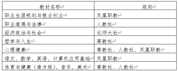 1、根据教育部及省教育厅关于职教教材选用相关要求,德育课、公共课选用教材如下: