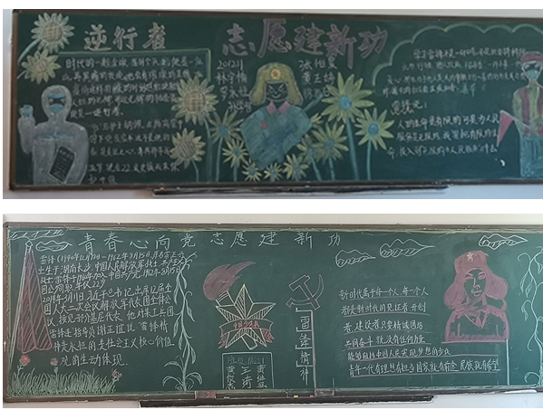 黑板报作为班级文化宣传阵地,为了最大程度的用好此阵地,发挥好宣传效果,机械工程学院于3月26日开展了向雷锋同志学习,以“志愿建新功”为主题的黑板报评比活动。本次活动涉及锡澄校区全部班级,各班充分发挥了学生们的主人翁精神,无论是板报版面的安排,还是内容的选择、书写,都由学生自己设计,独立完成。学生根据自己的特长分工合作,绘制图画、撰写文稿、搜集资料,各班主题鲜明,内容充实,图文并茂,趣味性强,全方位、多角度的展现了主题,营造了浓郁的校园文化氛围,既达到了宣传、教育目的,又提高了学生动手、动脑的能力,充分展现了师生积极向上的精神文明风貌。