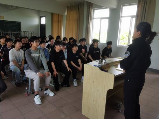 沙警官从校园内经常出现的校园欺凌、校园诈骗等真实的案例中为同学们进行分析青少年犯罪的原因及后果,并教育大家端正自己的行为习惯,增强自身的遵纪守法意识,要做一个知法、懂法、守法的好学生。