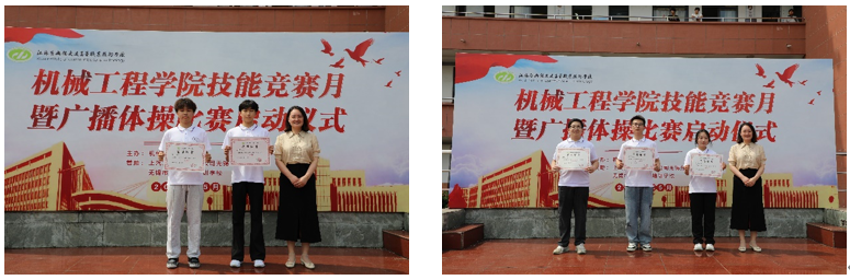 为深入贯彻国家提出的“每天锻炼一小时,健康工作 50 年,幸福生活一辈子”的体育健康理念,营造浓郁的校园体育锻炼氛围,切实提高同学们的健康水平。机械工程学院于2025年5月21日下午在锡澄校区操场举行了首届第九套广播体操比赛。参加本次活动的有:校党委委员、副校长吴雪琴;基础教学部主任杨凤琴;上汽大通无锡分公司副经理蔡蓉;无锡市精英培训学校负责人丁辉。同时参加广播体操比赛观摩的还有来校参加校园活动日的50多名家长代表。