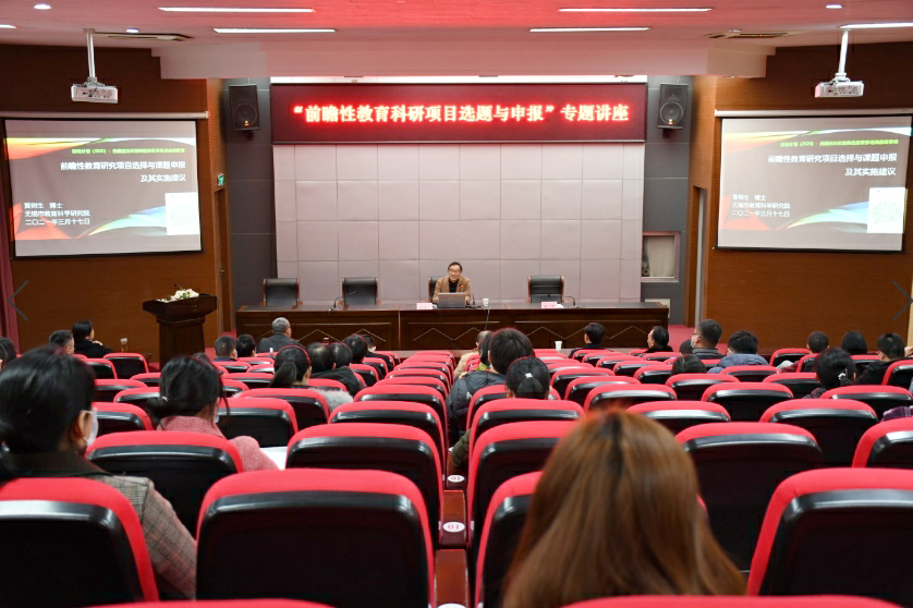 为进一步提升我校教师科研能力,提高学校科研项目申报数量和质量,3月17日,学校邀请无锡市教育科学研究院研究生导师黄树生博士来校做《前瞻性教育科研项目选题与申报》专题讲座。学校近一百名教师参加。讲座由学校副校长耿兴华主持。