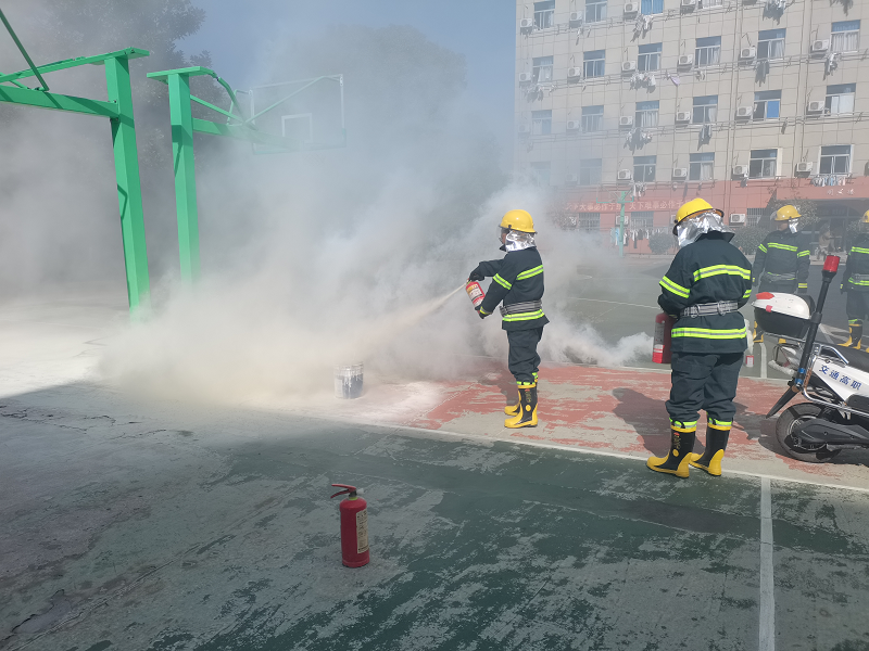 培训活动分为队列、基本技能、消防器材的使用四个环节。利用实际讲解和现场演示相结合让安保人员对消防物资装备、消防应急响应处理程序、校园突发事件处理等有更深入的了解和使用。