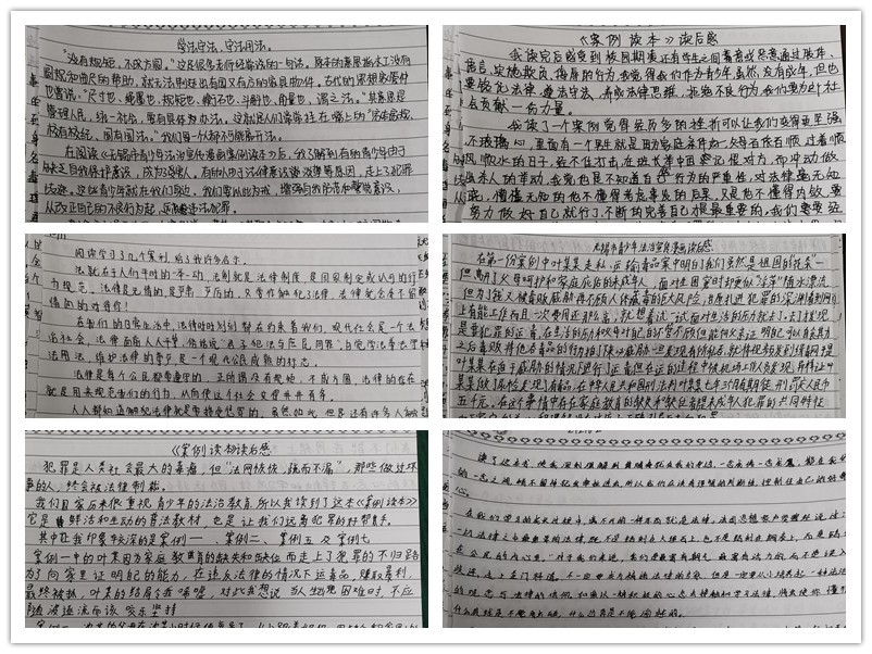 在学院的统一组织下,各班级学生认真阅读《无锡市青少年法治宣传漫画案例读本》,通过联系实际生活,对典型案例深入分析、讨论,以手写方式撰写心得体会,加深对法律法规的认识。《无锡市青少年法治宣传漫画案例读本》以生动鲜活的常见案例警醒读者,增强青少年自我防范和警觉意识,使他们成为社会主义法治的忠实崇尚者、自觉遵守者、坚定捍卫者。