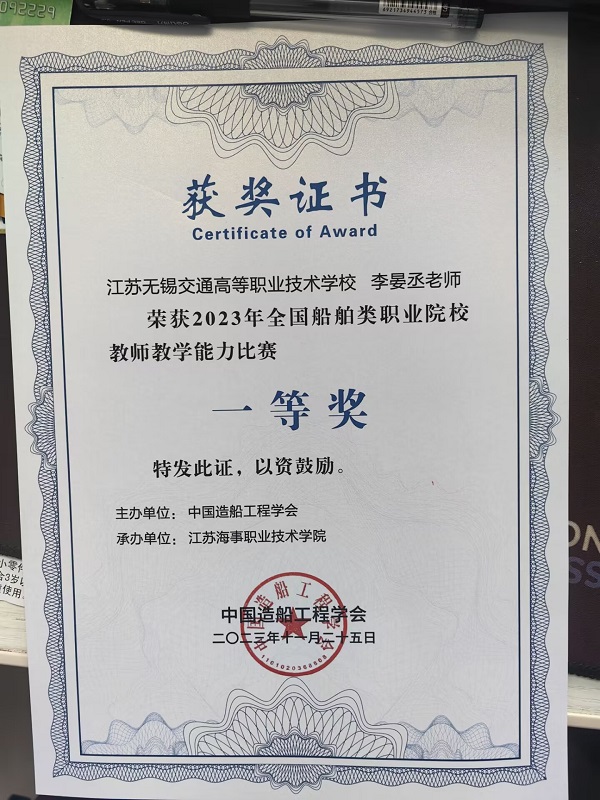 此次比赛的获奖,不仅是对李晏丞老师教学能力的肯定,也是对开云官方站在线登入船舶工程学院教学水平的认可。学校将继续致力于提高教学质量和水平,培养更多优秀的船舶工程人才,为我国船舶工业的发展做出更大的贡献。全国船舶类专业教学能力比赛旨在促进船舶类专业教师之间的交流与合作,提高教师的教学水平和专业素养。此次比赛的成功举办,为推动我国船舶工程教育的改革与发展注入了新的动力。