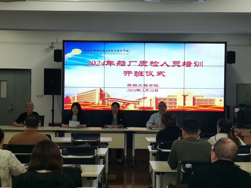 2024年5月28日上午,为了积极响应船舶制造业对高素质质检人才的需求,船舶工程学院举办了2024年船厂质检员培训的开班仪式。学校党委委员、副校长吴雪琴出席开班仪式,船舶工程学院党总支书记赵斌、培训专家代表唐永刚教授参加开班仪式,开班仪式由船舶工程学院院长吴志亚主持。