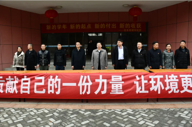 李书记带头在“贡献自己的力量,让环境更美丽”的横幅上签名,表达“让校园更绿、让校园更美”的绿色理念。随后,李书记同党员志愿者、学生志愿者一起,参与义务植树,为生态校园再添新绿。