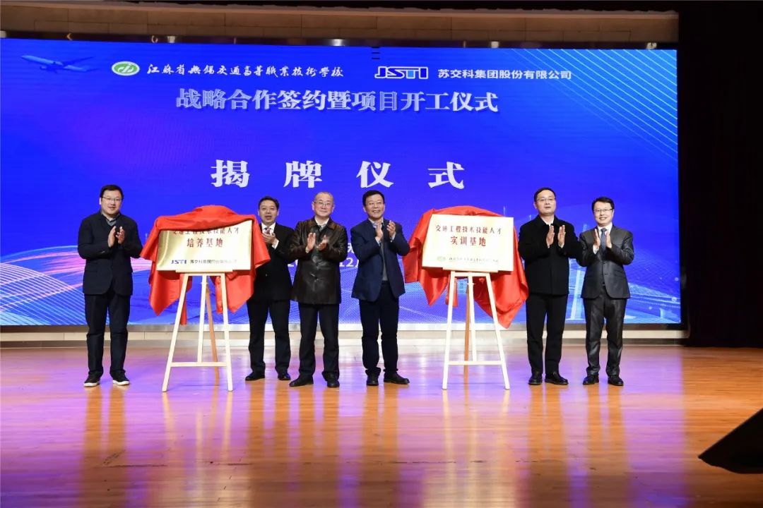 金凌副厅长、夏成满书记、朱晓宁总裁、李虎书记、俞刚局长、惠恭健副局长共同见证战略合作协议的签订,共同为“苏交科集团交通工程技术技能人才培养基地”和“开云官方站在线登入技术技能人才实训基地”揭牌,并启动生产性交通工程试验检测中心项目开工仪式。