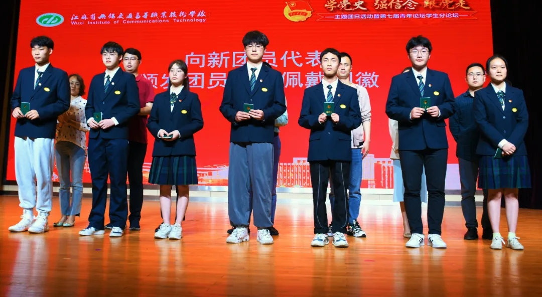 活动在庄严的国歌声中拉开帷幕。入团仪式上,各学院团总支书记为新团员代表颁发团员证,佩戴团徽,并组织老团员重温入团誓词,新团员进行入团宣誓,全体人员共同接受了一次思想的升华和心灵的洗礼。新团员惠婷渊同学、老团员王秋怡同学作为代表发言,她们均表示要在学习生活中不断炼就自己,努力使自己成为综合素质全面发展、具有优秀品质、良好素养的新时代团员青年。8分钟微团课《中共一大的召开》记录了中国共产党梦想的启航,展示了中国共产党人伟大的爱国主义精神,激励团员青年牢记历史,不忘初心,奋发向上。