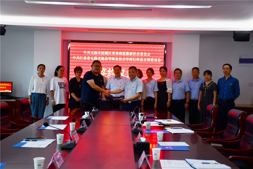 为深入贯彻落实习近平总书记在党史学习教育动员大会上的重要讲话精神,结合“两在两同”建新功行动,强化党建引领作用,发挥学校和地方双方优势,着力构建共建促发展新模式。9月14日,学校行政党总支与无锡市滨湖区荣巷街道勤新社区举行党建结对共建签约仪式,学校党委书记、校长李虎出席签约仪式。校党委副书记、纪委书记朱雨兰,勤新社区党委书记张乐天共同参加了此次活动。