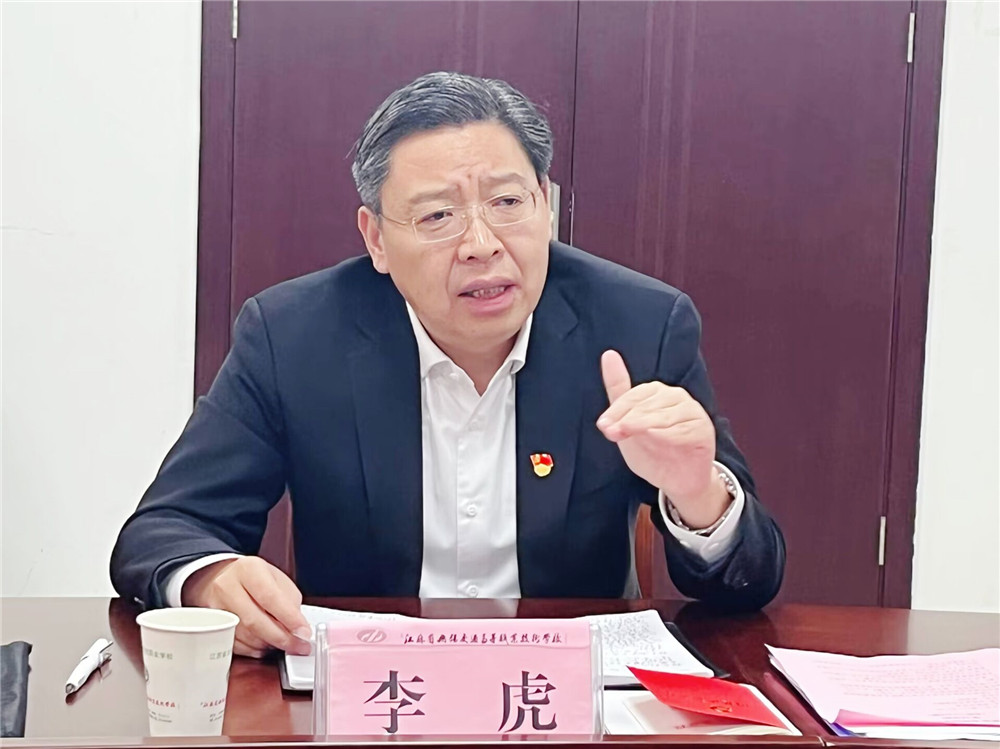李虎书记指出,要深入领会党的二十大报告,深刻领悟"两个确立"的决定性意义,自觉用党的二十大精神统一思想和行动。他强调,学院党总支、党支部要继续把党的二十大精神学习引向深入,聚焦“五个牢牢把握”,多渠道、多方式深悟党的二十大精神内涵,引导党员干部、师生在深学细悟中把握党的二十大精神的思想精髓、核心要义。他要求,要坚持知行合一,结合2022年年度目标任务、五年制高职办学单位人才培养工作水平评估整改任务和领航学校建设任务,把党的二十大精神落实到各项工作和今后发展中,推动学校工作高质量发展。