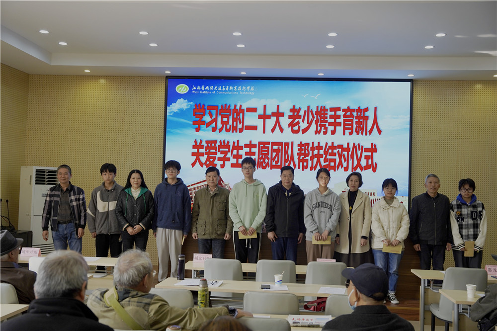 在我校离退休党总支指导下,校关工委、退教协的组织下,关爱学生志愿团队结对仪式顺利举行。110名老同志共捐赠爱心款1.5万元,离退休老同志与新生中的贫困生进行一对一、一对多关爱帮扶结对,共资助了50名困难学生,充分展现了新时代离退休老干部群体的光辉形象。