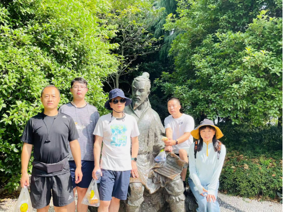 八点刚过,老师们早已到达起点,天空睛朗,霞光万道,大家合影留念后,从蠡湖之光向东出发开始了5km徒步之旅,沿着环西蠡湖小圈向渔夫岛行进、范蠡塑像是首个打卡点,大家漫步范蠡堤、渤公岛,一路欣赏美景、接受文化熏陶、在蠡湖展示馆完成二次打卡后、再环湖路行走,最后回到终点蠡湖之光。近10点大部分参赛队伍到达终点,正值百米高喷启动,彩虹乍现,大家忙与百米高喷来个合影,记录这一美好时刻。