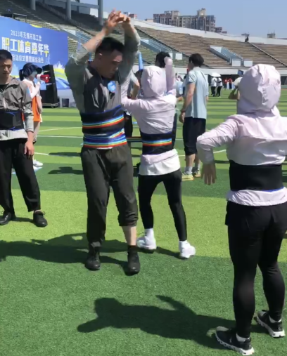 (图为:我校教职工代表队爱的魔力转圈圈比赛剪影)