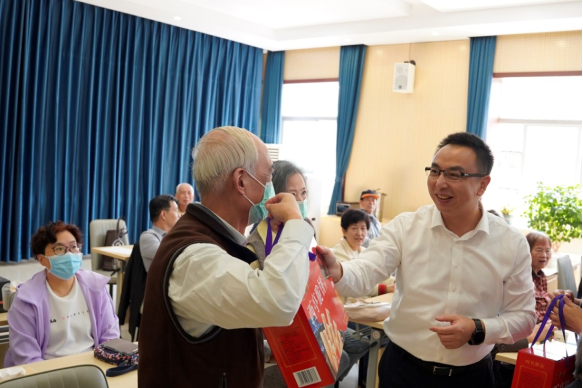 现场举行了关爱学生志愿团队结对仪式。112名老同志共捐赠爱心款近2万元,用于资助困难学生。会上还对智老培训工作和“银发生辉”活动进行总结,对先进个人进行颁奖。李进代表学校党委向老干部表示崇高的敬意和衷心的感谢,并向广大离退休老领导、老同志发放重阳节糕点致以诚挚的慰问。