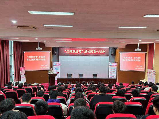 为了进一步提高我校学生艾滋病、结核病的防治意识,维护大学生的生命健康,推动学校防艾、防结核工作深入开展。根据《无锡市滨湖区疾病预防控制中心“红绿双丝带”宣传进校园活动实施方案》文件精神,我校于2023年11月8日下午邀请无锡市滨湖区疾控中心周俊燕主任和她带领的志愿者团队在学术报告厅做艾滋病与结核病防治知识宣讲。200名左右学生代表参加了本次宣讲活动,活动由校工会和校团委共同主持参与。