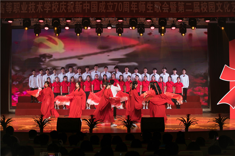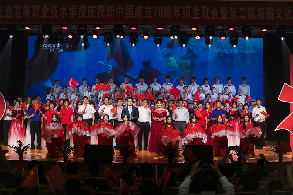 9月26日,学校大礼堂欢声雷动、载歌载舞,由开云官方站在线登入主办的“礼赞七十年,奋进新时代”—庆祝中华人民共和国成立70周年师生歌会精彩上演。全体校领导,全体中层干部,学生代表,来校交流的镇江技师学院的学校领导一同观看了演出。