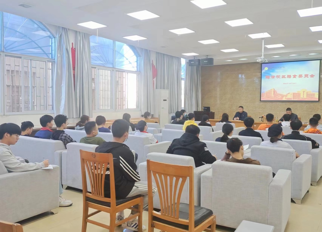 会议首先由校区办王洪德老师向师生代表汇报20221-9月份校园餐饮工作监督管理情况,总结上学期及本学期开学后校园餐饮工作中存在的问题及改进的方法;汇报了上学期校园餐饮工作民主测评情况以及针对同学们在测评中提出的意 见建议的整改情况。