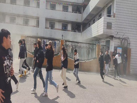 演练中广大同学口捂毛巾、弯腰躬身,紧贴墙边,按照预定路线迅速撤离宿舍。整个演练过程师生各司其职、通力协作、全力以赴、妥善应对,很好的完成了本次消防疏散演练。