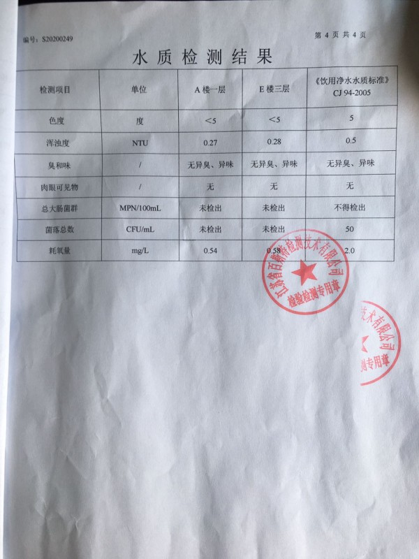 答:百分之百安全。学校引进第三方检测机构对直饮水水质进行实时监控,并按照国家的相关规定进行检测,出示的检测报告显示,学校的直饮水水质完全符合安全水质的标准。有效的改善了学校水资源的服务供应。