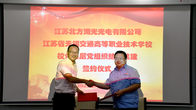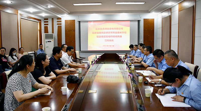 为深入贯彻落实习近平总书记在党史学习教育动员大会上的重要讲话精神,强化党建引领作用,发挥校企双方优势,探索新时代基层党建工作新思路,着力构建校企共建促发展新模式。6月30日,学校机电工程学院党总支与江苏北方湖光光电有限公司人力资源党支部,举行党建结对共建签约仪式,副校长耿兴华、湖光光电公司纪委书记王亚军,以及机电工程学院党总支党员代表、湖光光电有限公司人力资源党支部党员代表共同出席仪式。
