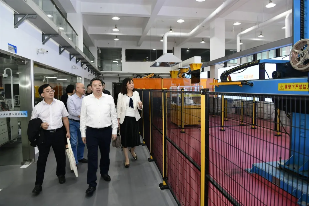 与会领导还参观了学校焊接实训基地、工业机器人实训中心、物联网实训中心等。
