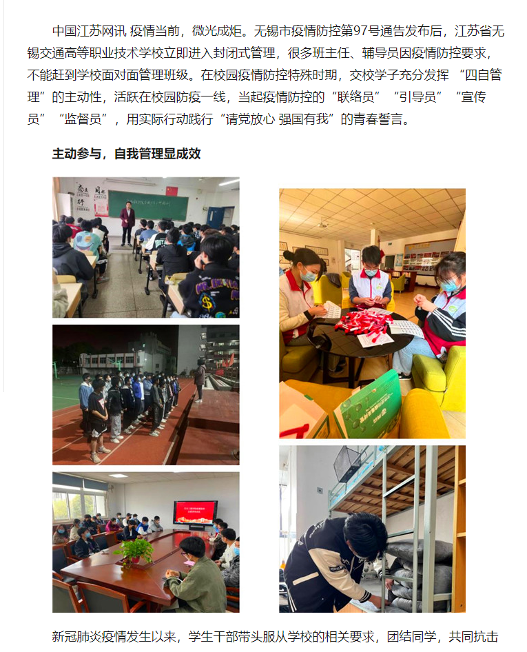 中国江苏网:开云官方站在线登入“四自管理”促成效 “疫”路畅通保平安