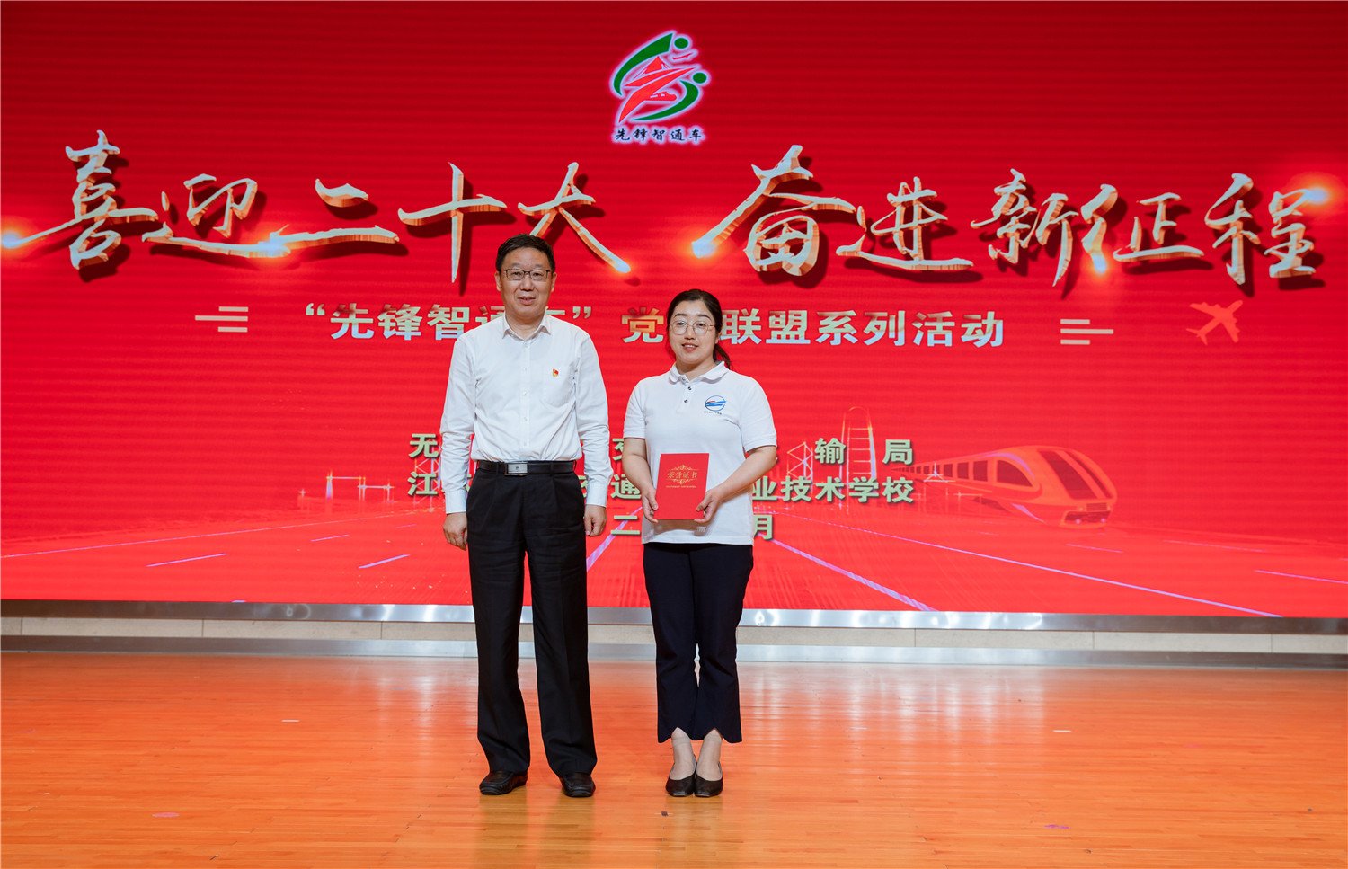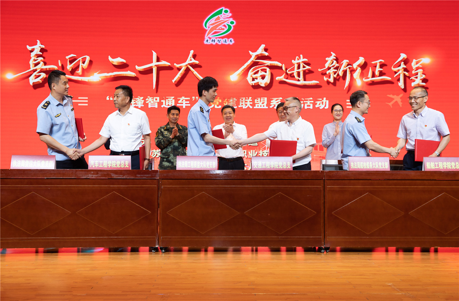 为深入学习习近平新时代中国特色社会主义思想,贯彻落实习近平总书记在庆祝中国共产主义青年团成立100周年大会上的重要讲话精神,持续深化无锡交通运输局和学校“先锋智通车”党建联盟,团结引领广大交通青年进一步坚定理想信念,坚定不移跟党走,积极投身交通事业高质量发展,喜迎党的二十大胜利召开。6月8日,无锡市交通运输局和学校联合开展“喜迎党的二十大,奋进新征程”先锋智通车党建联盟系列活动。江苏联合职业技术学院副院长陶向东,学校党委书记、校长李虎,市交通运输局党委副书记尹南方,共建部队政委聂文,团市委副书记何舟,学校党委委员、副校长倪依纯,市委市级机关工委组织处处长陈静,市委组织部规划办张剑兰,团市委学少部部长孙庭标,无锡商业职业技术学院经济管理学院党总支副书记金星等领导出席了系列活动。活动由学校党委副书记、五级职员朱雨兰主持。