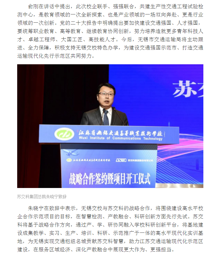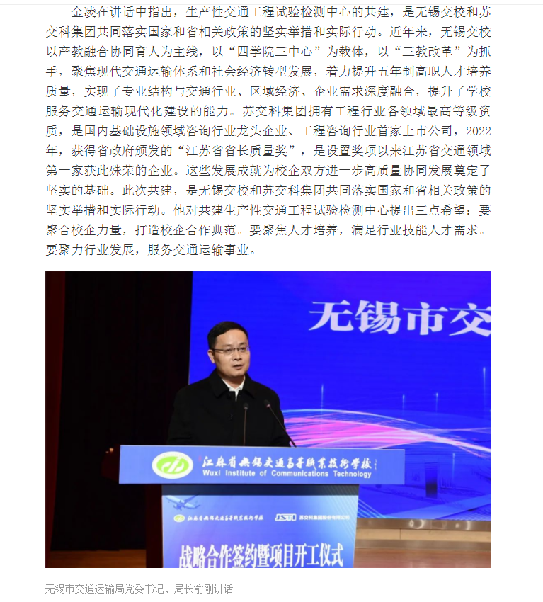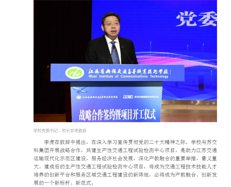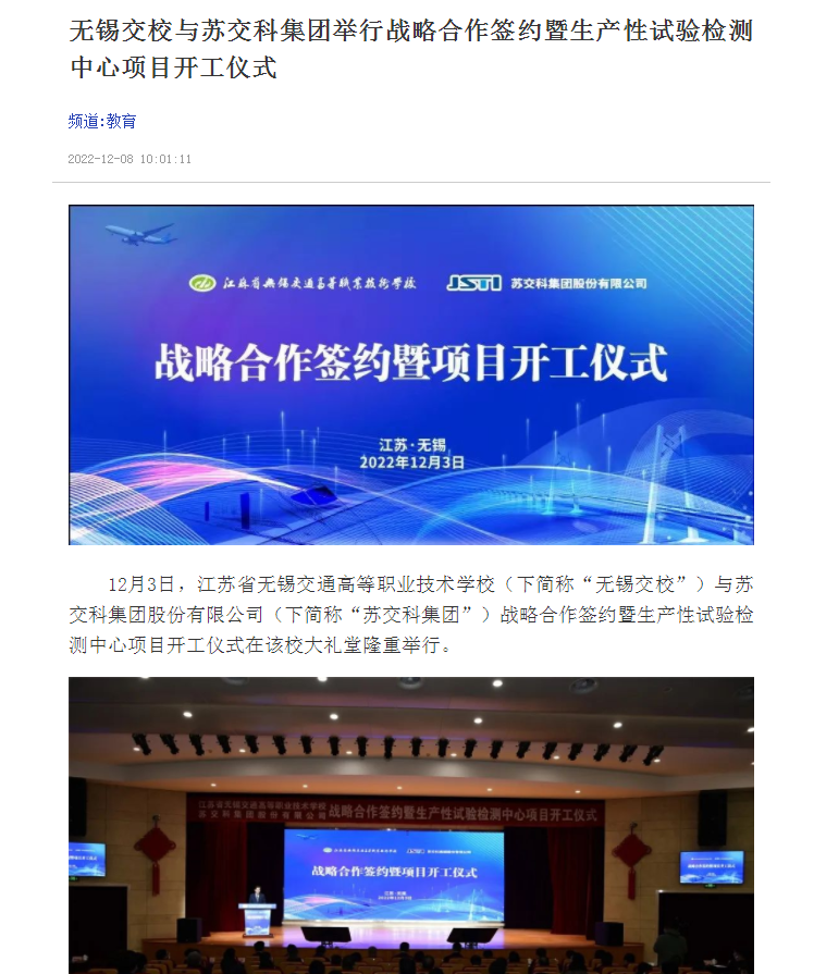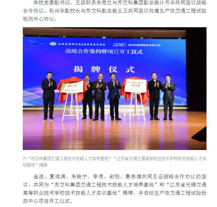 交汇点:无锡交校与苏交科集团举行战略合作签约暨生产性试验检测中心项目开工仪式