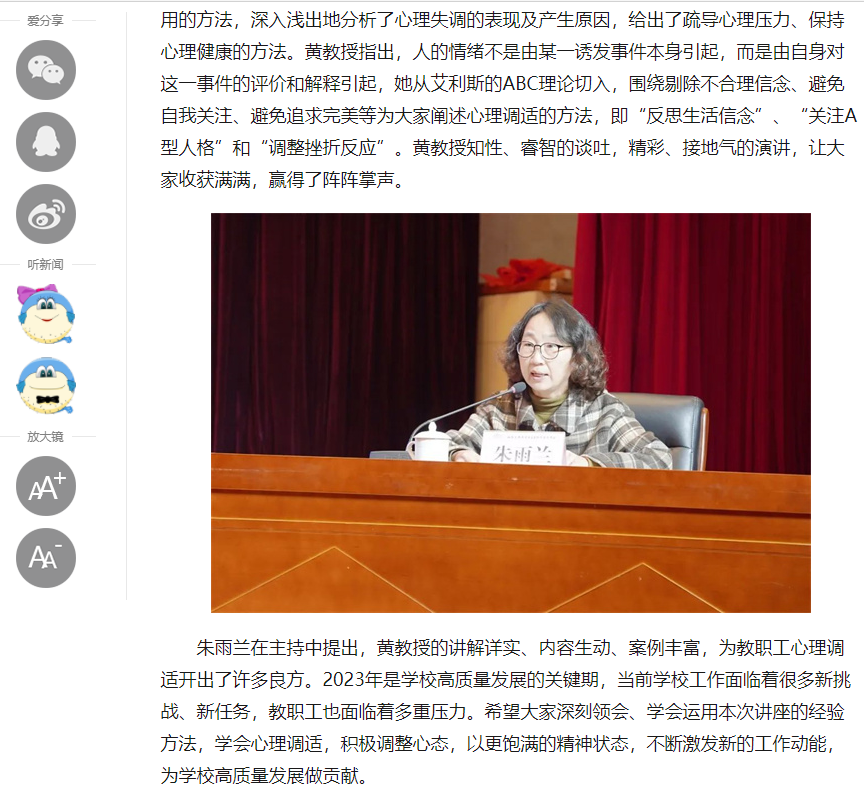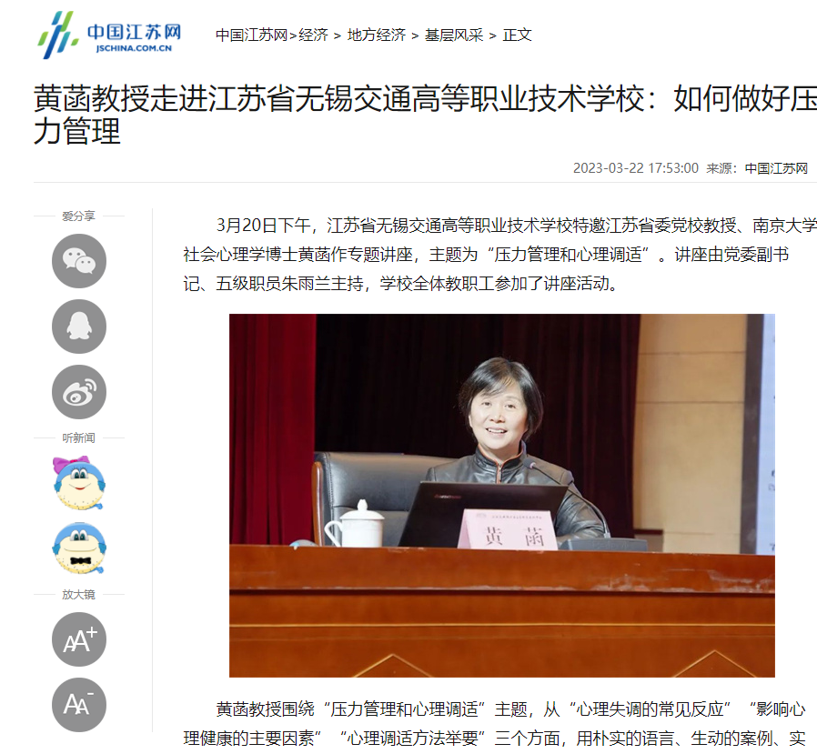 黄菡教授走进开云官方站在线登入:如何做好压力管理_中国江苏网 (jschina.com.cn)
