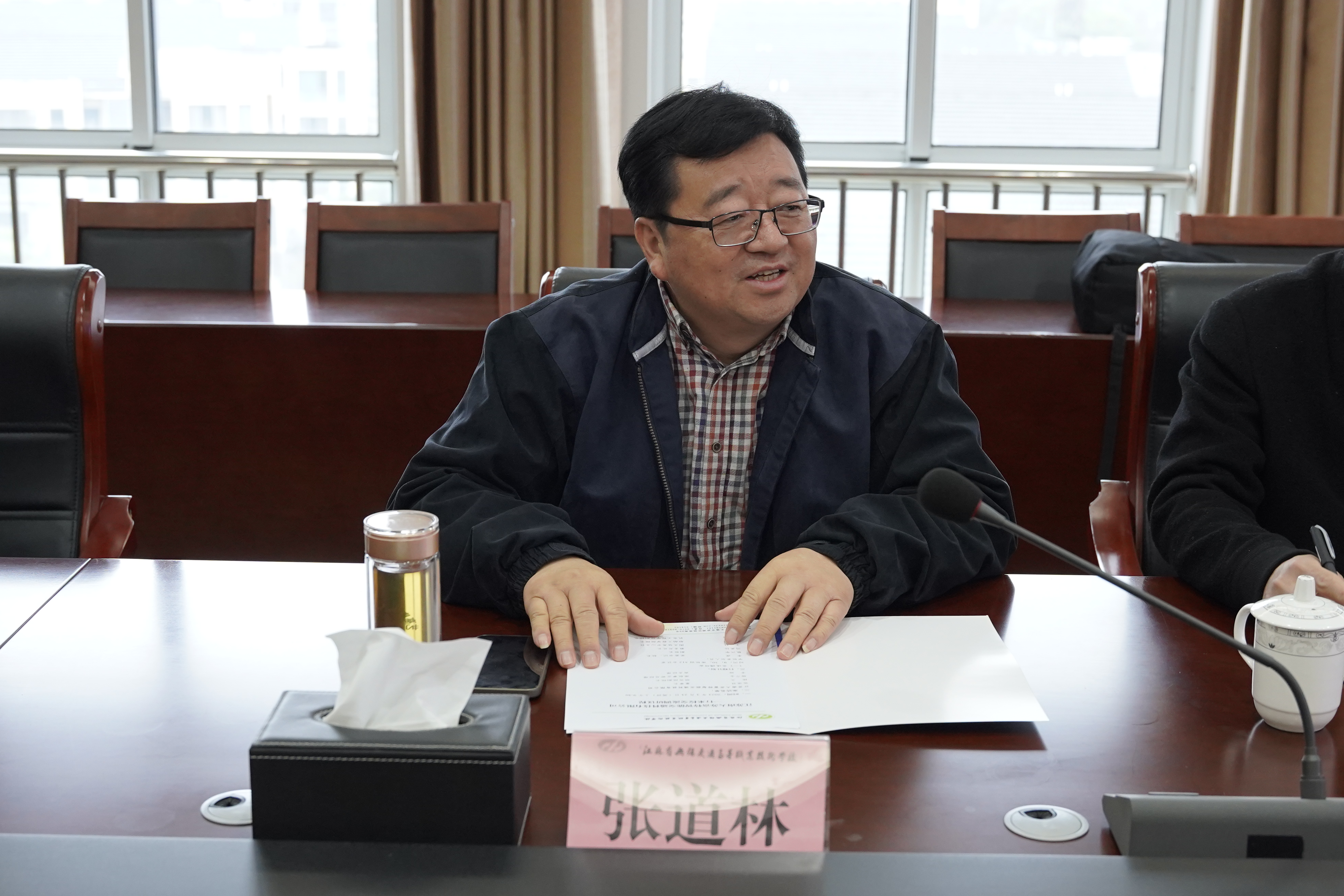 会上,李虎对张道林一行的来访表示热烈欢迎,他介绍了学校的办学特色。李虎提出,要继续发挥学校资源优势,优化专业结构,提高人才培养与产业发展的契合度,立足交通运输行业,完善产教融合协同育人机制,与苏富特开展全方位多层次的深度合作。