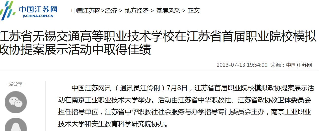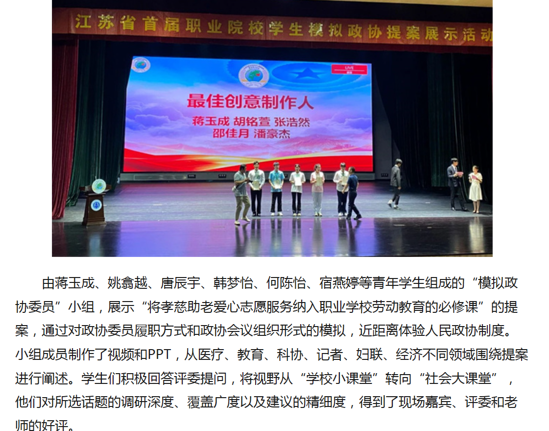 开云官方站在线登入在江苏省首届职业院校模拟政协提案展示活动中取得佳绩_中国江苏网 (jschina.com.cn)