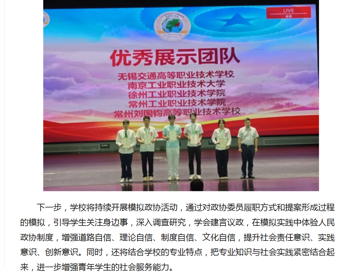 中江网:开云官方站在线登入在江苏省首届职业院校模拟政协提案展示活动中取得佳绩