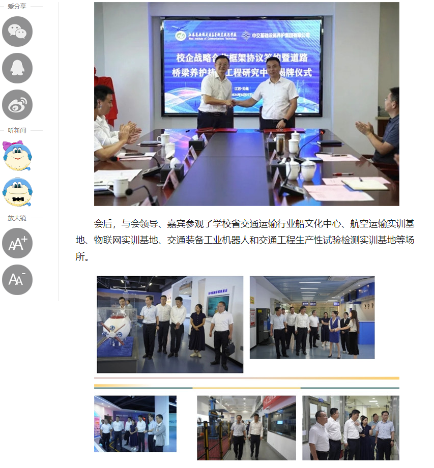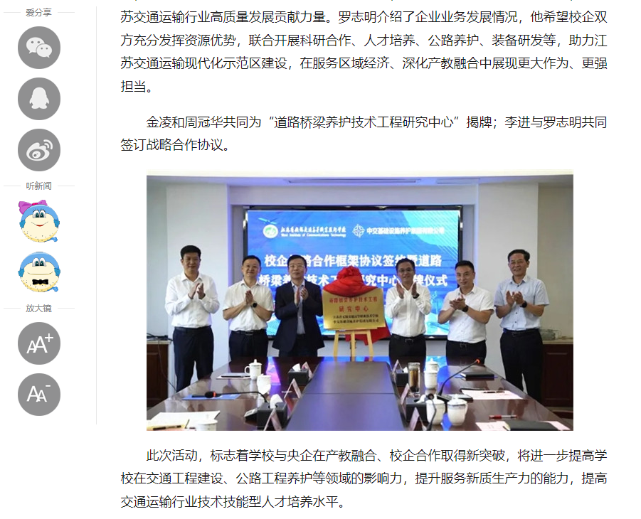 中江网:开云官方站在线登入举行与中交基础设施养护集团有限公司校企战略合作框架协议签约暨道路桥梁养护技术工程研究中心揭牌仪式