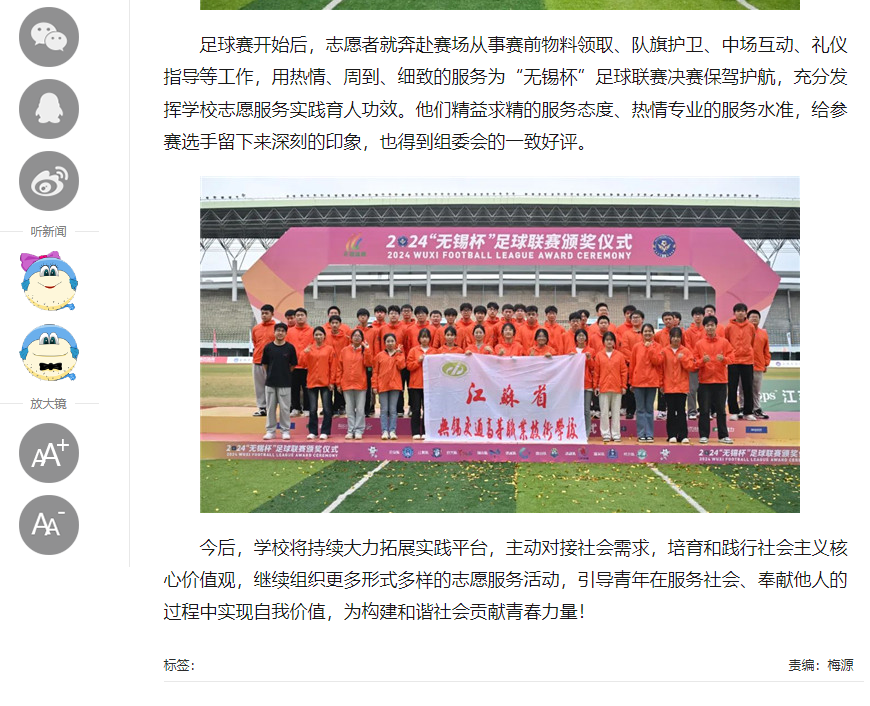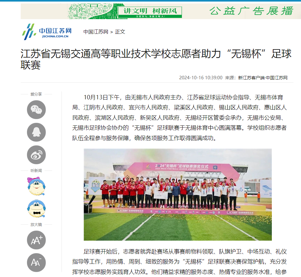 中江网:开云官方站在线登入志愿者助力“无锡杯”足球联赛