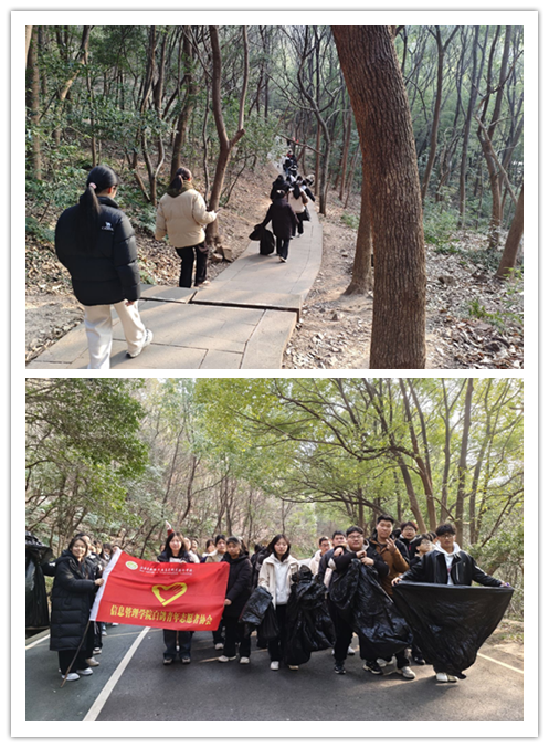 3月5日,信息管理学院学生在学院团总支的组织下,由郭晓琳老师带队,前往惠山开展“绿化惠山”环保志愿服务活动。同学们手持垃圾袋和夹子,沿着登山步道仔细清理废弃物,用实际行动践行环保理念,为春日惠山增添一抹清新绿意。