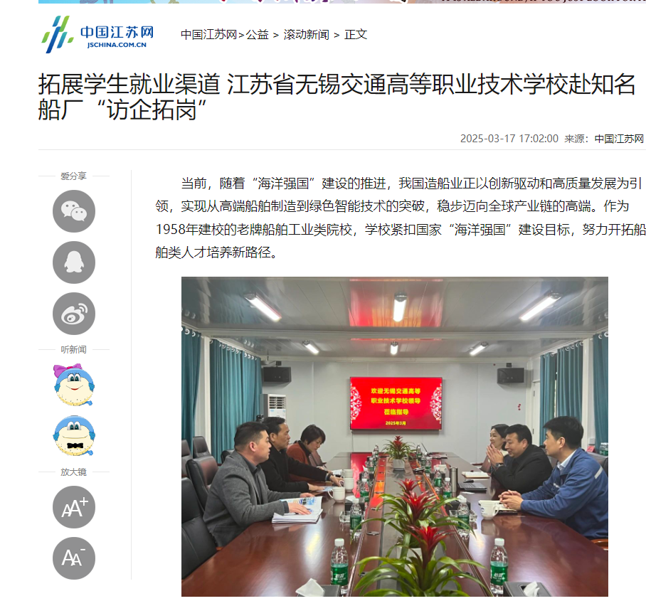 中江网:拓展学生就业渠道 开云官方站在线登入赴知名船厂“访企拓岗”
