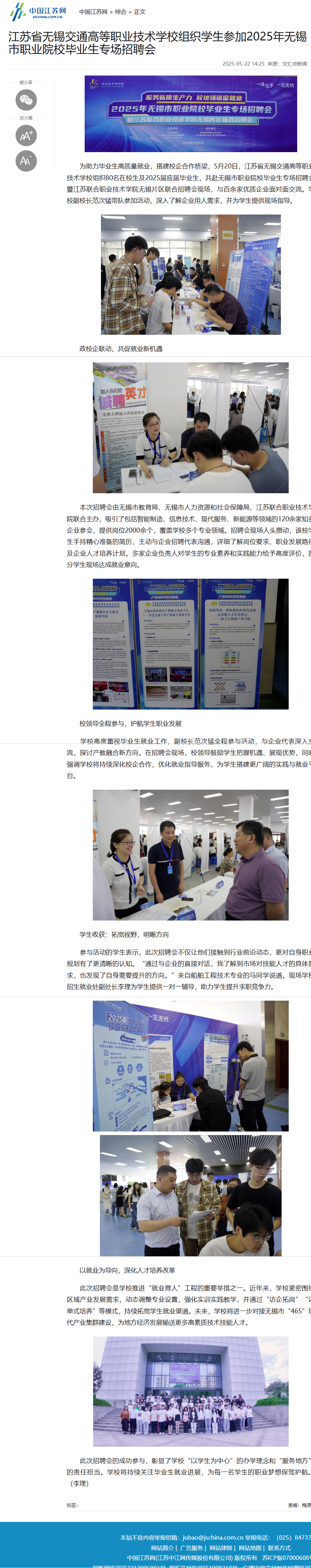 开云官方站在线登入组织学生参加2025年无锡市职业院校毕业生专场招聘会_中国江苏网