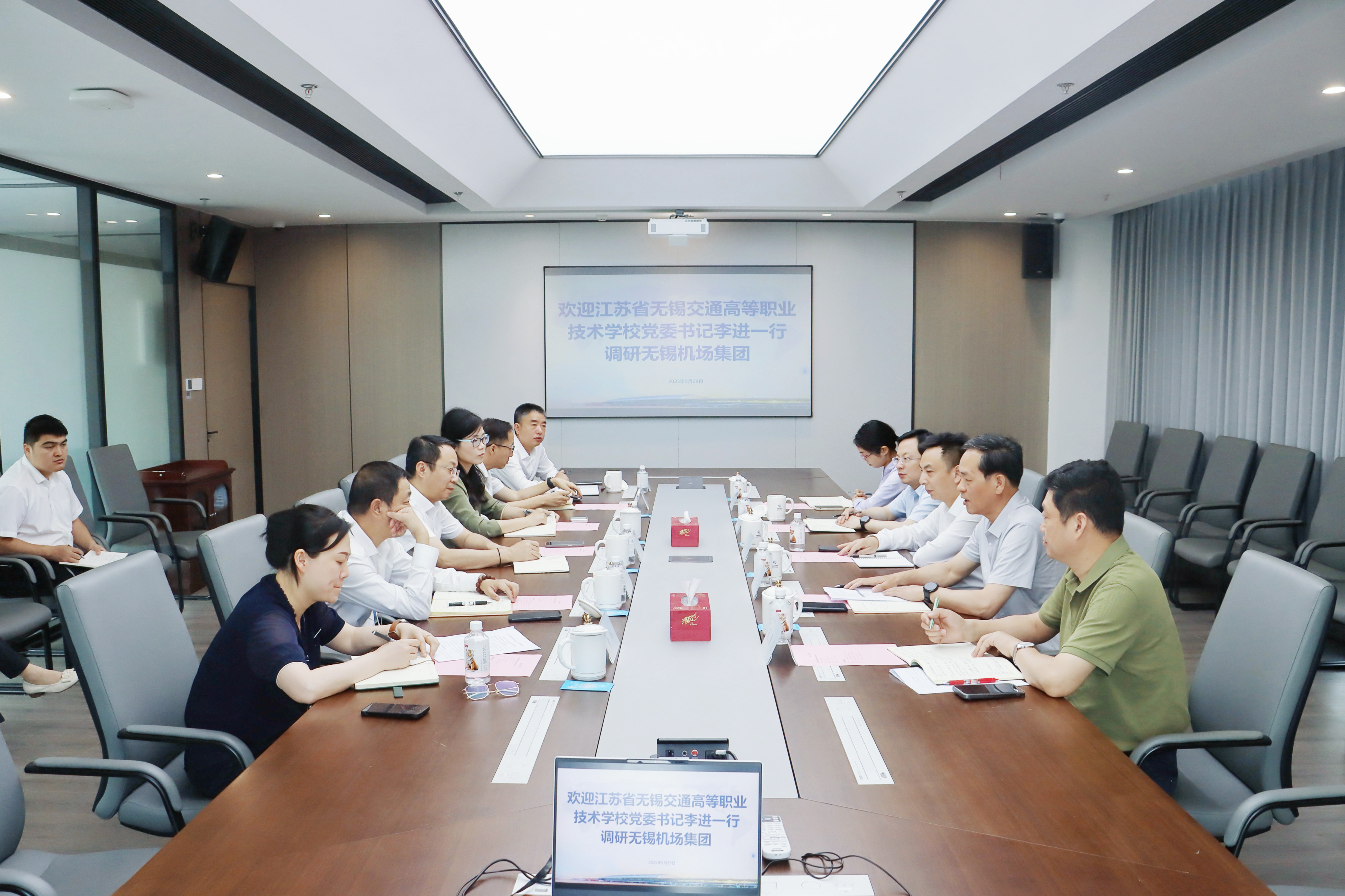 为深化校地校企融合共建,5月29日,学校党委书记李进、校长耿兴华率相关职能部门、二级学院负责人等赴无锡苏南国际机场集团,开展低空经济专项调研暨产教融合工作座谈会。机场集团党委书记、董事局主席刘震宇,党委副书记、工会主席李娴及相关部门、子公司负责人陪同调研。