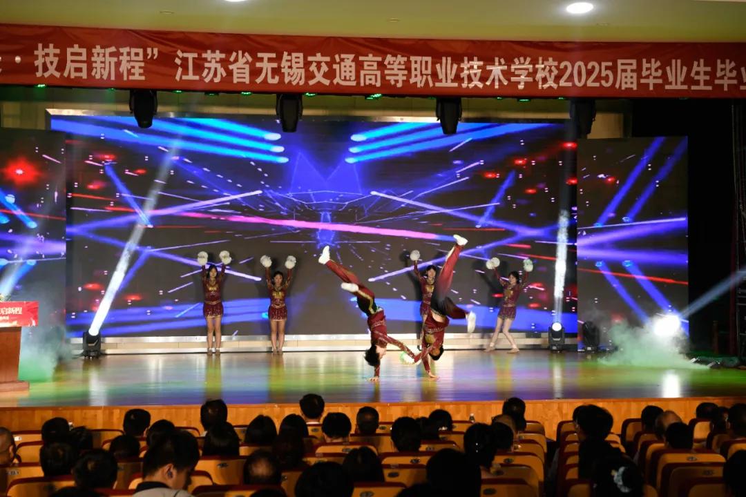 典礼过程精彩纷呈,充分展现了交校学子的技能风采与青春活力。活力四射的花球啦啦操《炫彩跃动》点燃现场气氛;刚柔并济的武术表演《太极之韵 青春华彩》诠释了中华传统体育文化的魅力;优美典雅的古典舞《云销雨霁》与充满时代气息的现代舞《舞悦青春》则展示了学子们多元的艺术修养;由国学堂社团呈现的音诗画《有我》,更是以艺术形式表达了青年一代的担当与抱负。《毕业祝福视频》汇集了来自四面八方的深情祝福,温暖了每一位毕业生的心田。