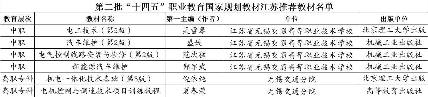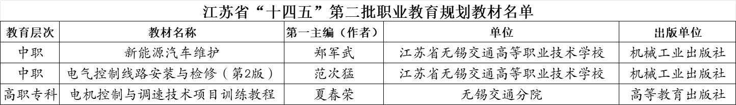 喜报!我校3部教材入选江苏省“十四五”第二批职业教育规划教材